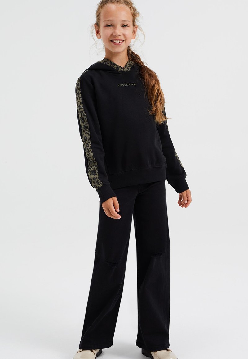 Stay cozy and stylish this Autumn/Winter season with the Casual Black Hoodie for Women from WE Fashion. Made from soft and comfortable fabric, this hoodie is perfect for lounging or running errands. The classic black color makes it easy to pair with any outfit, while the relaxed fit adds a touch of effortless cool. Elevate your casual wardrobe with the Felpa Hoodie from WE Fashion.