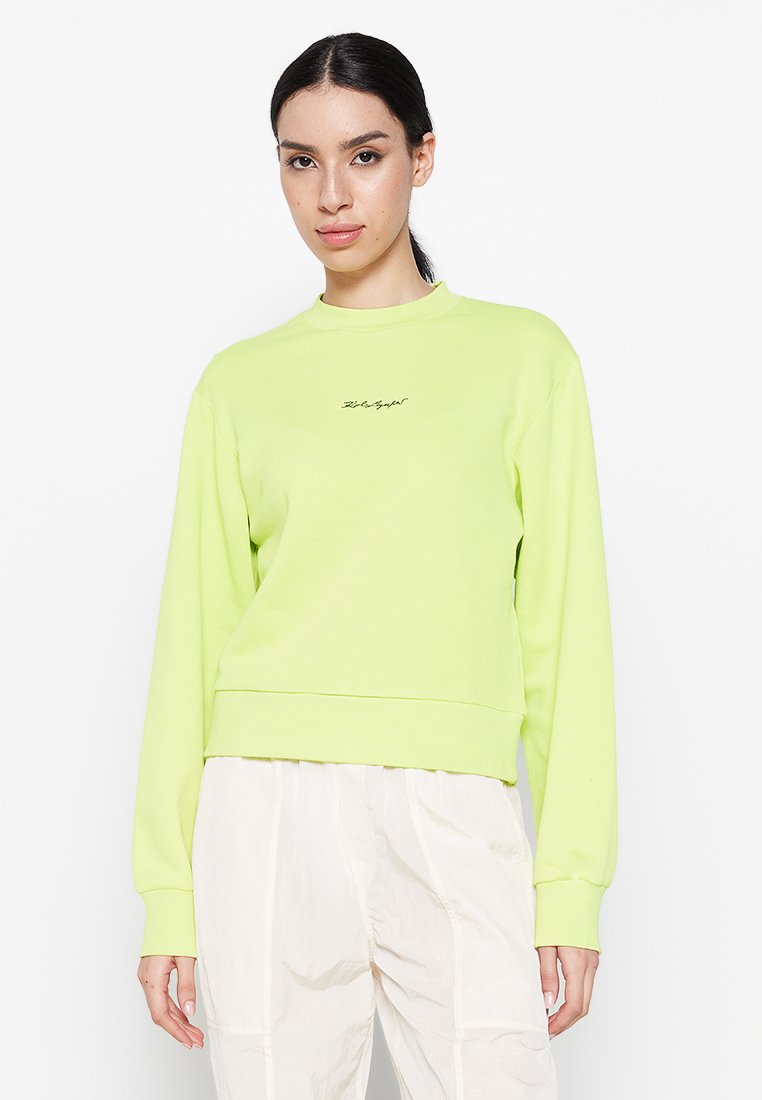 Stay cozy and stylish this Autumn/Winter season with the Casual Green Hoodie for Women by Karl Lagerfeld. Crafted with comfort in mind, this felpa features a vibrant green color that will elevate your wardrobe effortlessly. Perfect for casual outings or lounging at home, this hoodie is a must-have staple for your cold-weather wardrobe. Upgrade your look with this trendy piece from the iconic Karl Lagerfeld brand.
