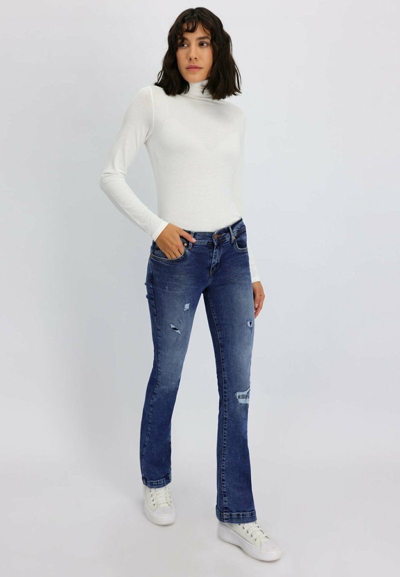 Stay stylish and cozy this Autumn/Winter in these Casual Blue Flare Jeans from LTB. With a flattering flared leg design, these pants are a versatile addition to your wardrobe. Pair them with a chunky sweater and boots for a chic cold-weather look. Get ready to slay the season in these trendy jeans a zampa.