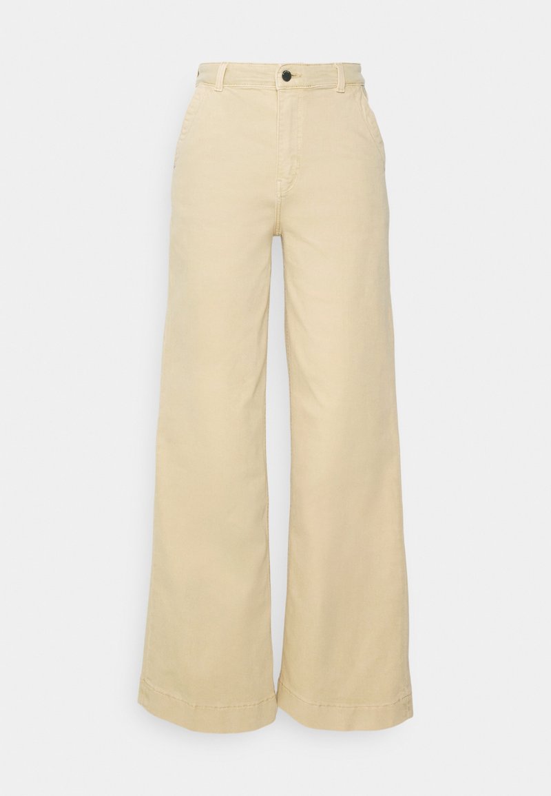 Stay stylish and cozy this Autumn/Winter season with these casual yellow flared jeans from Guess. Perfect for pairing with your favorite sweaters and boots, these pants are a must-have for your cold-weather wardrobe. The on-trend silhouette and vibrant color will add a pop of brightness to any outfit. Upgrade your denim collection with these trendy wide-leg jeans.