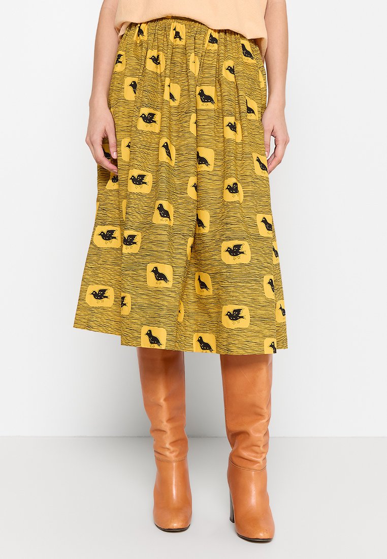 This Stella Nova skirt is the perfect addition to your spring/summer wardrobe. With a casual yet elegant style, this yellow flared skirt is versatile and chic. Whether you're dressing it up for a special occasion or keeping it casual for a day out, this skirt is a must-have. Stay stylish and on-trend with this fashionable piece.