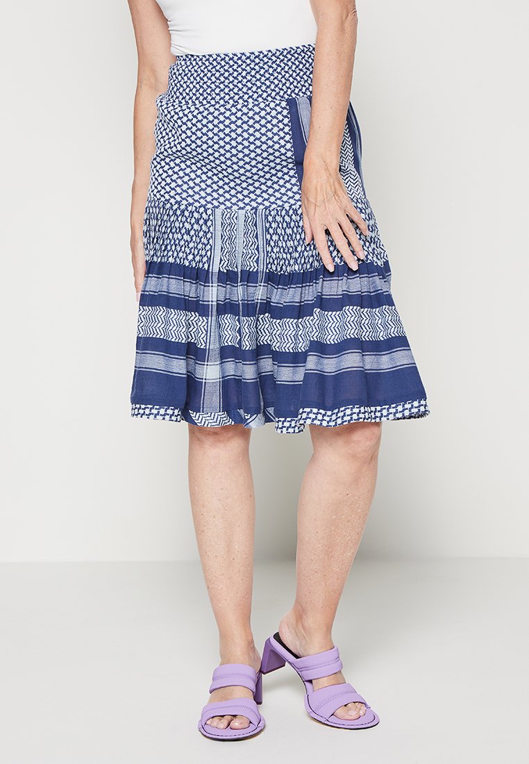 Introducing the Casual/Elegant Blue Skater Skirt from SUMMERY Copenhagen. Perfect for the Spring/Summer season, this versatile piece combines laid-back style with a touch of sophistication. Crafted with a flattering A-line silhouette, this skirt is ideal for any occasion. Elevate your wardrobe with this chic and timeless essential.
