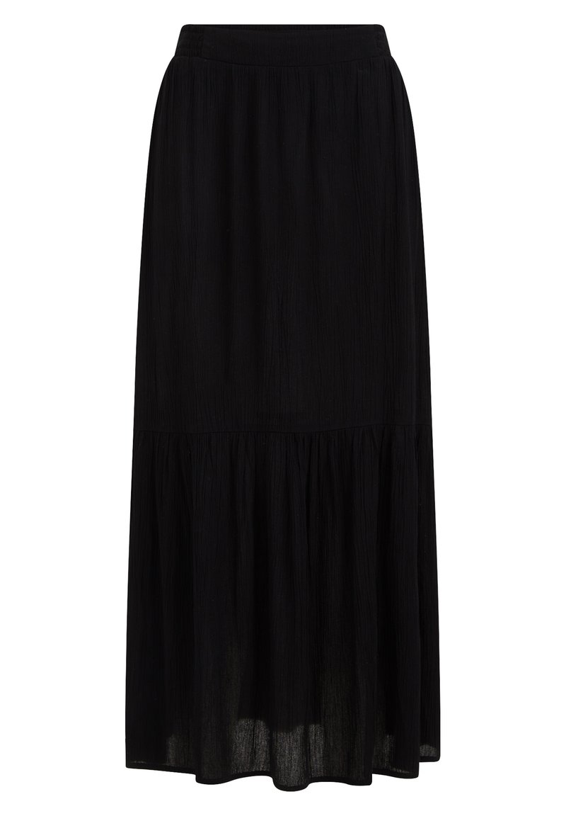 Introducing the WE Fashion black A-line skirt, perfect for the Spring/Summer season. This versatile piece effortlessly transitions from casual to elegant, making it a must-have for any woman's wardrobe. The flattering silhouette and timeless color make it easy to mix and match with your favorite tops and shoes. Stay stylish and comfortable all season long with this chic skirt.