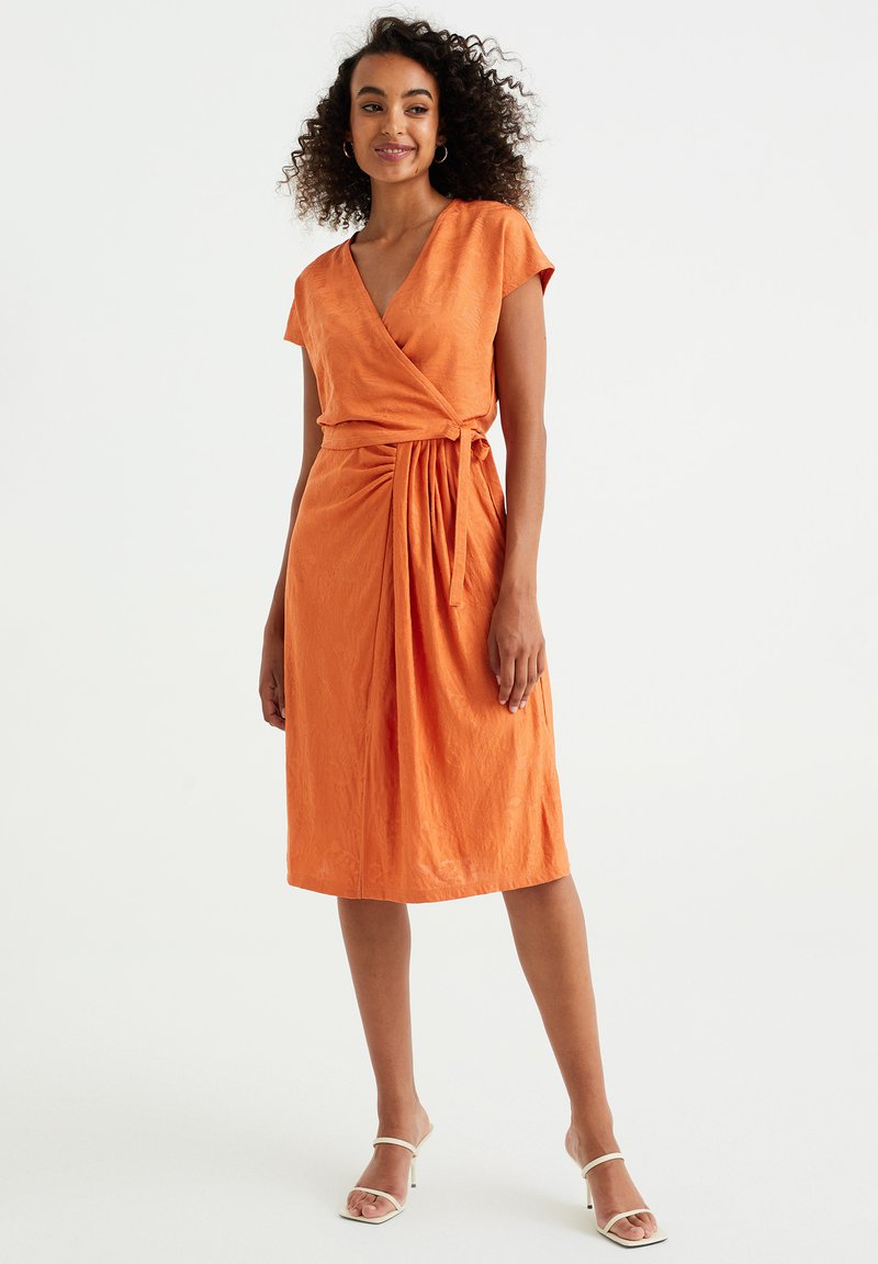Get ready to turn heads in this Casual/Elegant Orange Women's Skater Skirt from WE Fashion. Made for the Spring/Summer season, this versatile piece is perfect for any occasion. The flattering A-line silhouette and vibrant color make it a must-have for your wardrobe. Pair it with a simple tee for a laid-back look or dress it up with a blouse for a more polished style.