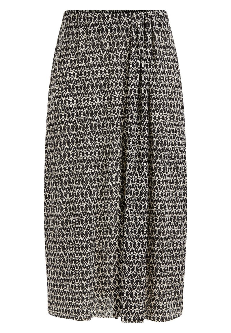 Introducing the WE Fashion black A-line skirt, perfect for the Spring/Summer season. This versatile piece effortlessly transitions from casual to elegant, making it a must-have for any woman's wardrobe. The flattering silhouette and timeless color make it easy to mix and match with your favorite tops and shoes. Stay stylish and comfortable all season long with this chic skirt.