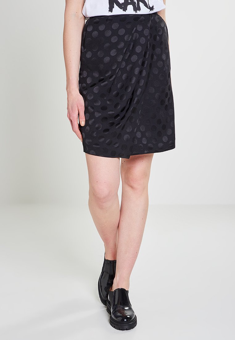 Elevate your Spring/Summer wardrobe with this Casual/Elegant black skirt from Karl Lagerfeld. The perfect combination of style and comfort, this skirt features a flattering A-line silhouette and can be dressed up or down for any occasion. Add a touch of sophistication to your look with this versatile piece, whether you're heading to a brunch date or a night out with friends. Stay chic and stylish all season long with this must-have staple.