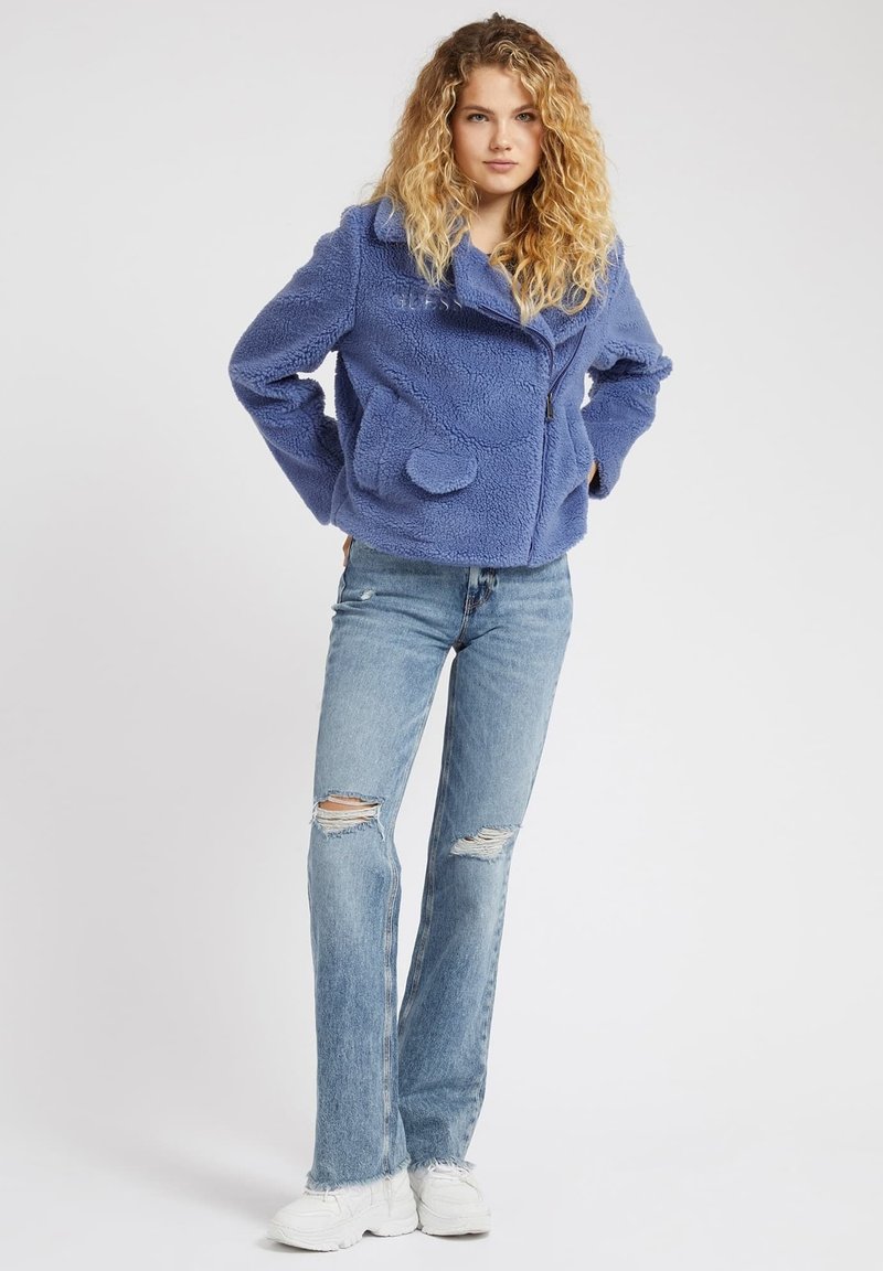 Stay warm and stylish this autumn/winter season with the Guess Casual Women's Jacket in Blue. This cozy fleece jacket is perfect for layering and adding a pop of color to your outfit. Whether you're running errands or meeting friends for coffee, this versatile jacket is a must-have for your wardrobe. Upgrade your casual look with the Guess Casual Women's Jacket in Blue.