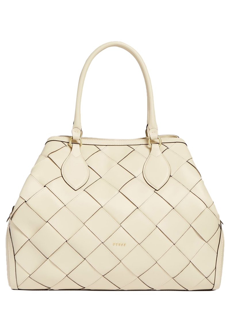 Elevate your Spring/Summer look with this stylish Guess handbag in elegant white. Perfect for any occasion, this bag seamlessly transitions from casual to elegant. With its sleek design and spacious interior, this handbag is a must-have accessory for the season. Make a statement with the Guess borsa a mano in white.