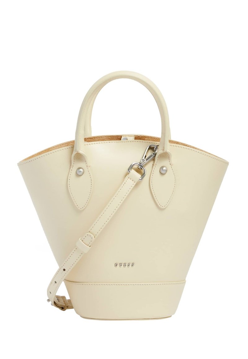 Elevate your Spring/Summer look with this stylish Guess handbag in elegant white. Perfect for any occasion, this bag seamlessly transitions from casual to elegant. With its sleek design and spacious interior, this handbag is a must-have accessory for the season. Make a statement with the Guess borsa a mano in white.