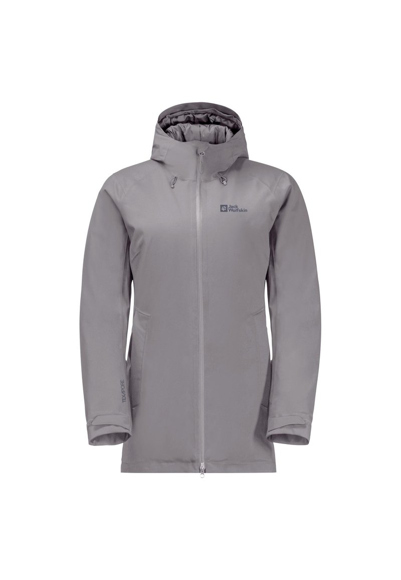 Stay stylish and warm this Autumn/Winter season with the Jack Wolfskin Casual Jacket for Women in a sleek grey color. This hard shell jacket is perfect for everyday wear, providing both protection from the elements and a trendy look. With its practical design and comfortable fit, this jacket is the ideal choice for those cool and rainy days. Elevate your wardrobe with this versatile and fashion-forward piece from Jack Wolfskin.