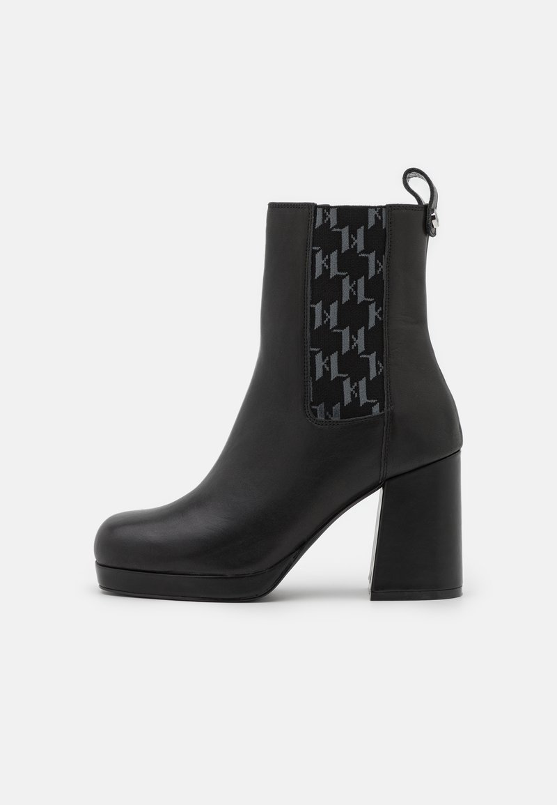 Elevate your Autumn/Winter look with these Casual Women's Boots from Karl Lagerfeld. The black color adds a sleek touch to any outfit, while the modern tacco heel provides both style and comfort. Perfect for transitional weather, these stivaletti con tacco are a must-have addition to your wardrobe. Stay chic and on-trend with Karl Lagerfeld.