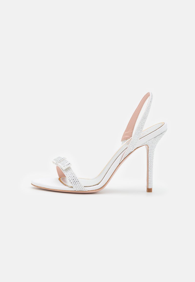 Step into Spring/Summer in style with these elegant white heels from GEDEBE. Perfect for adding a touch of sophistication to any outfit, these sandals with heels are a must-have for the season. The intricate embellishments and sleek design make them a versatile and chic option for any occasion. Elevate your look with these stunning sandals by GEDEBE.
