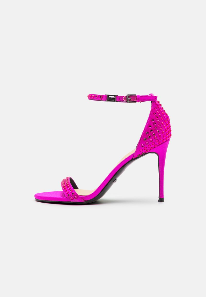Elevate your summer style with these elegant Guess heels in a colorful multi-toned design. Perfect for the warmer months, these sandals are a chic addition to any wardrobe. The sleek silhouette and high heel make them ideal for special occasions or nights out. Step out in style and make a statement with these trendy shoes.