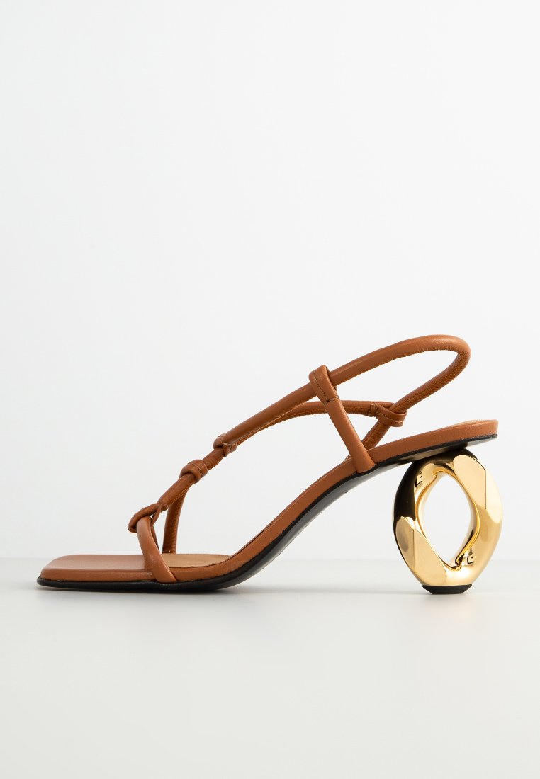 Elevate your look this Spring/Summer season with these Elegant Women's Shoes from the brand J.W. Anderson. Crafted in a timeless Brown color, these sandals with heels are perfect for adding a touch of sophistication to any outfit. Walk in style and comfort with the chic design and quality craftsmanship. Step out with confidence in these must-have statement sandals.