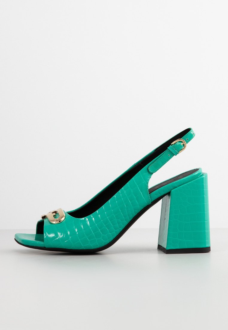 Elevate your spring/summer wardrobe with these elegant Furla green heels for women. Perfect for any special occasion or night out, these stylish sandals add a touch of sophistication to any outfit. The sleek design and comfortable fit make them a must-have for your shoe collection. Step out in style with these Furla "sandali con tacco."