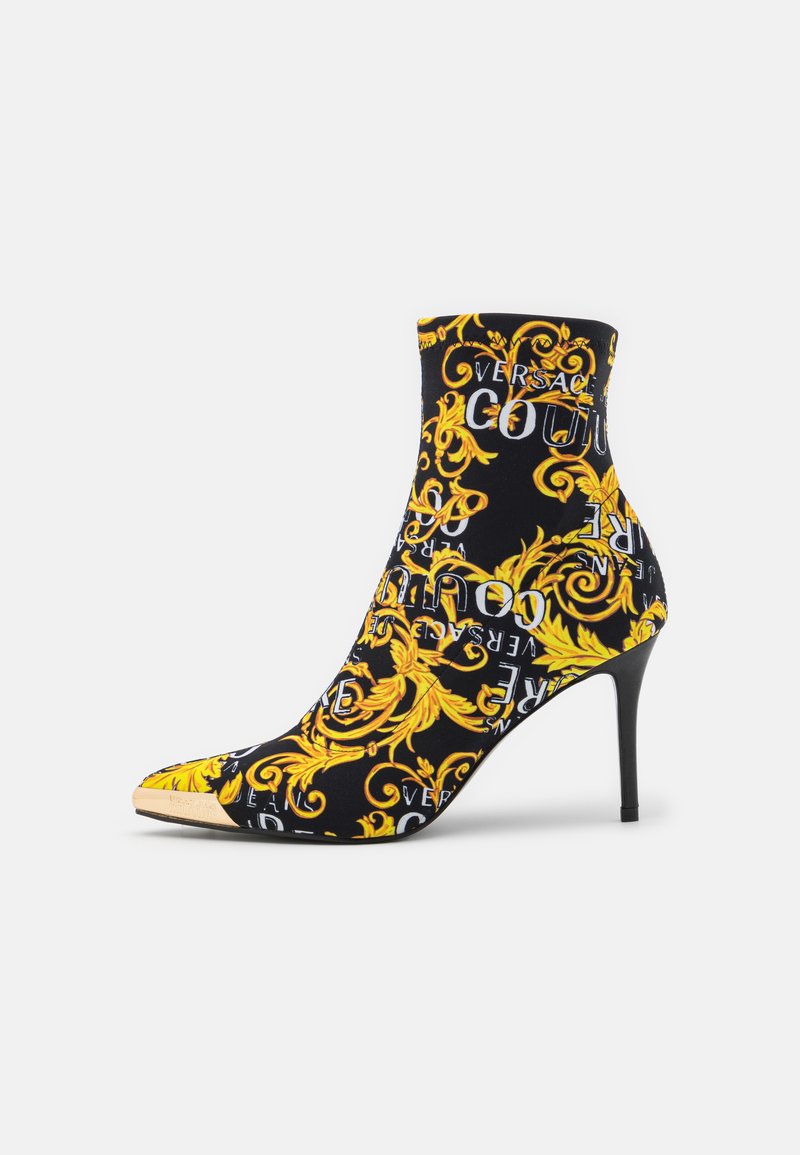 Stay stylish and comfortable this Autumn/Winter season with these Versace Jeans Couture Casual Boots for Women. In classic Black, these ankle boots feature a trendy heel for added flair. Perfect for pairing with your favorite jeans or dresses, these versatile boots are a must-have for your cold weather wardrobe. Elevate your look with these chic and practical stivaletti con tacco.