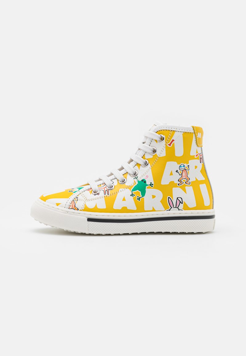 Stay stylish and comfortable this autumn/winter season with Marni's Sportive/Casual high-top sneakers in a vibrant yellow shade. Perfect for adding a pop of color to your outfit, these sneakers are versatile for both sporty and casual looks. Step out in style and stay on-trend with these chic and cozy shoes for women.