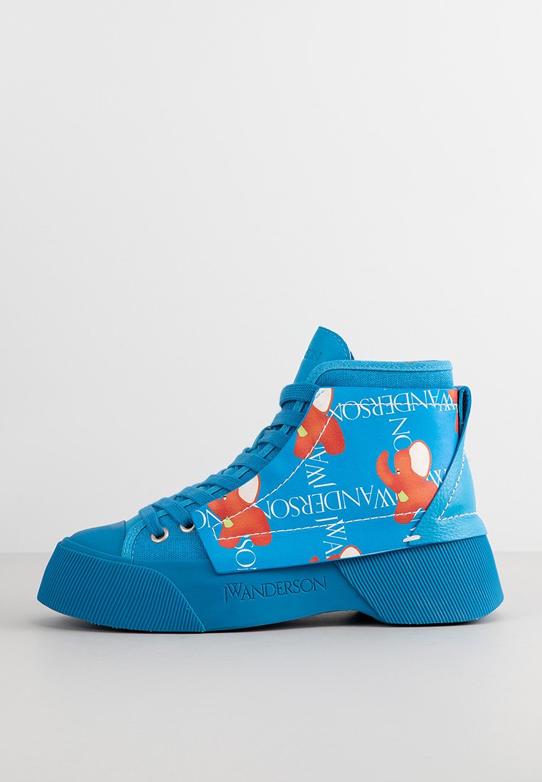 Stay stylish and comfortable this Autumn/Winter season with these sporty-casual sneakers from J.W. Anderson. In a chic shade of blue, these high-top sneakers are perfect for adding a pop of color to any outfit. Whether you're running errands or meeting up with friends, these shoes will keep you looking trendy and feeling cozy. Upgrade your footwear collection with these versatile and on-trend sneakers.