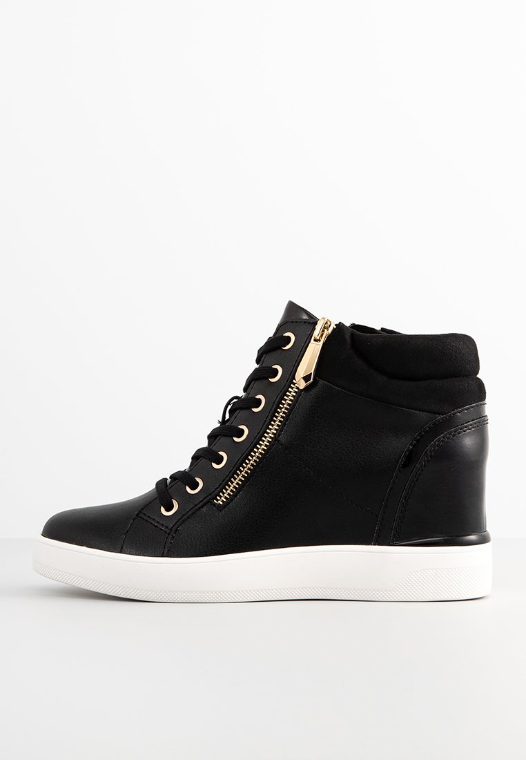 Stay stylish and comfortable this Autumn/Winter season with ALDO's high-top black sneakers. Perfect for those sporty-casual days, these shoes are a versatile addition to any wardrobe. With a sleek design and durable construction, these shoes will keep you looking chic while on the go. Upgrade your shoe collection with these trendy ALDO sneakers.