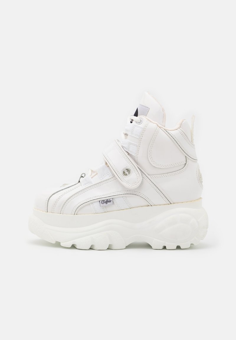 Get ready to step out in style with these sportive/casual sneakers from Buffalo. Perfect for the Autumn/Winter season, these white shoes are both trendy and versatile. The high-top design adds a touch of edge to any outfit, making them a must-have for your wardrobe. Stay comfortable and chic all season long with these Buffalo sneakers.