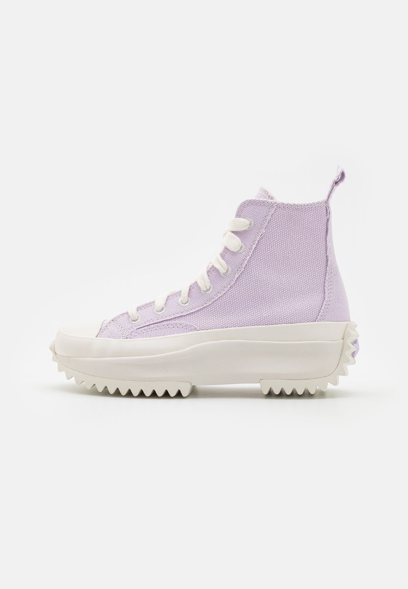 Stay stylish and comfortable this autumn/winter season with these Converse high top sneakers in a chic violet hue. Perfect for everyday wear, these sporty yet casual shoes for women add a pop of color to any outfit. Whether you're running errands or meeting friends for coffee, these sneakers are a must-have for your wardrobe. Upgrade your shoe collection with these trendy Converse sneakers alte.