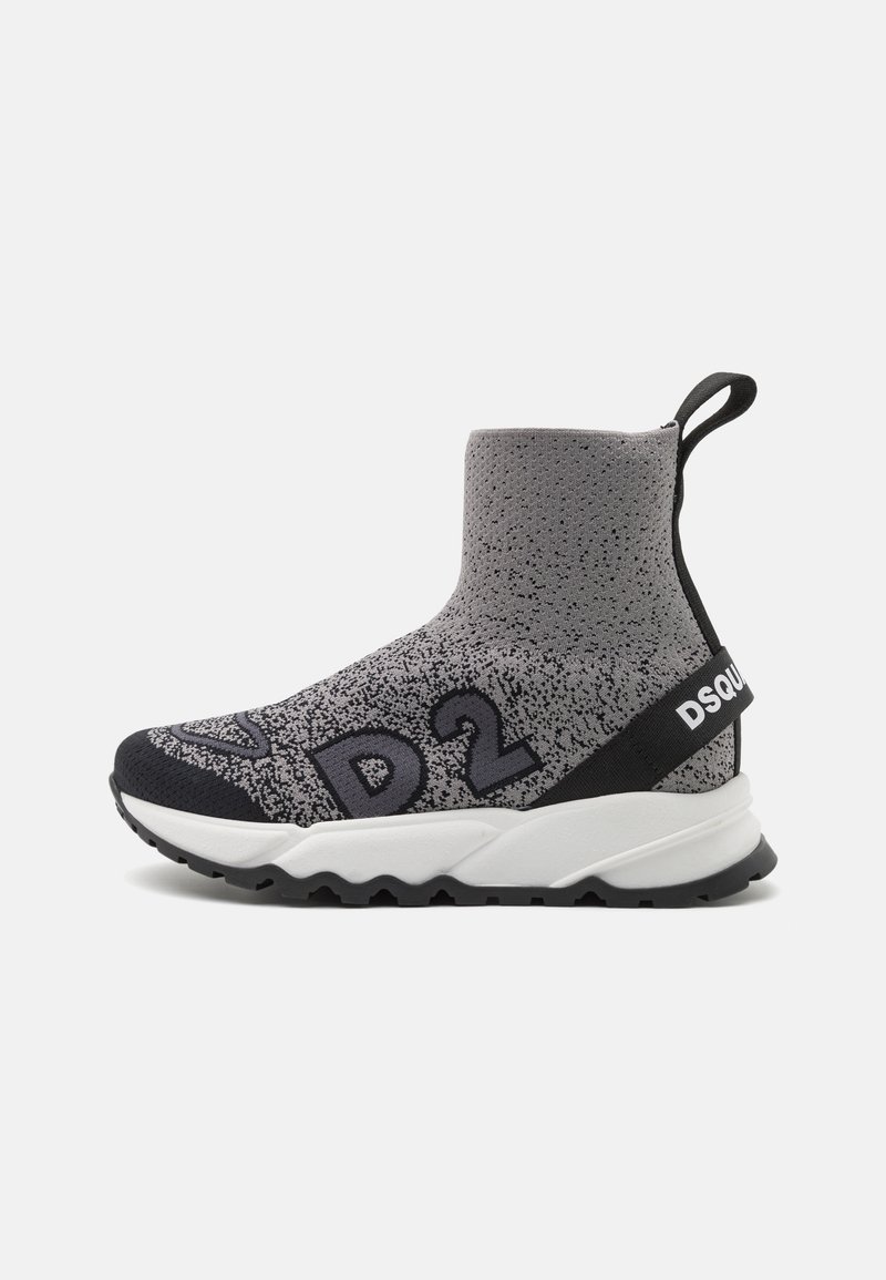 Stay stylish and comfortable this Autumn/Winter season with these black high-top sneakers from Dsquared2. Perfect for sporty or casual looks, these shoes combine fashion with function. Whether you're running errands or meeting friends for coffee, these versatile sneakers will keep you looking chic. Elevate your footwear game with these must-have Dsquared2 high-top sneakers.
