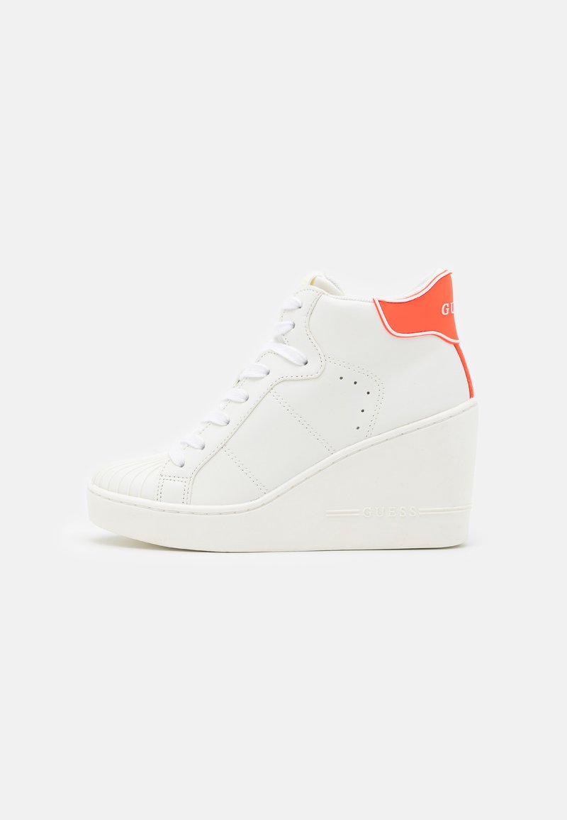 Stay stylish and comfortable this Autumn/Winter season with these Sportive/Casual sneakers from Guess. In a crisp white color, these shoes are perfect for daily wear. The high-top design adds a trendy touch to any outfit, making them a versatile choice. Step into fashion with these chic and practical sneakers for women.