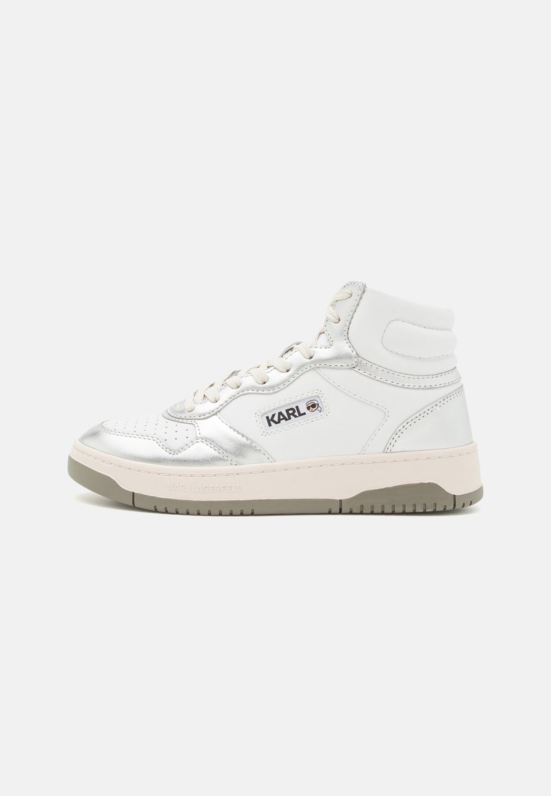 Stay stylish and comfortable this Autumn/Winter season with these sporty yet casual White sneakers from Karl Lagerfeld. Perfect for everyday wear, these high-top sneakers feature a sleek design that effortlessly elevates any outfit. Slip into these shoes for a chic and trendy look that will keep you on-trend all season long. Add a touch of luxury to your wardrobe with these versatile and fashion-forward sneakers.