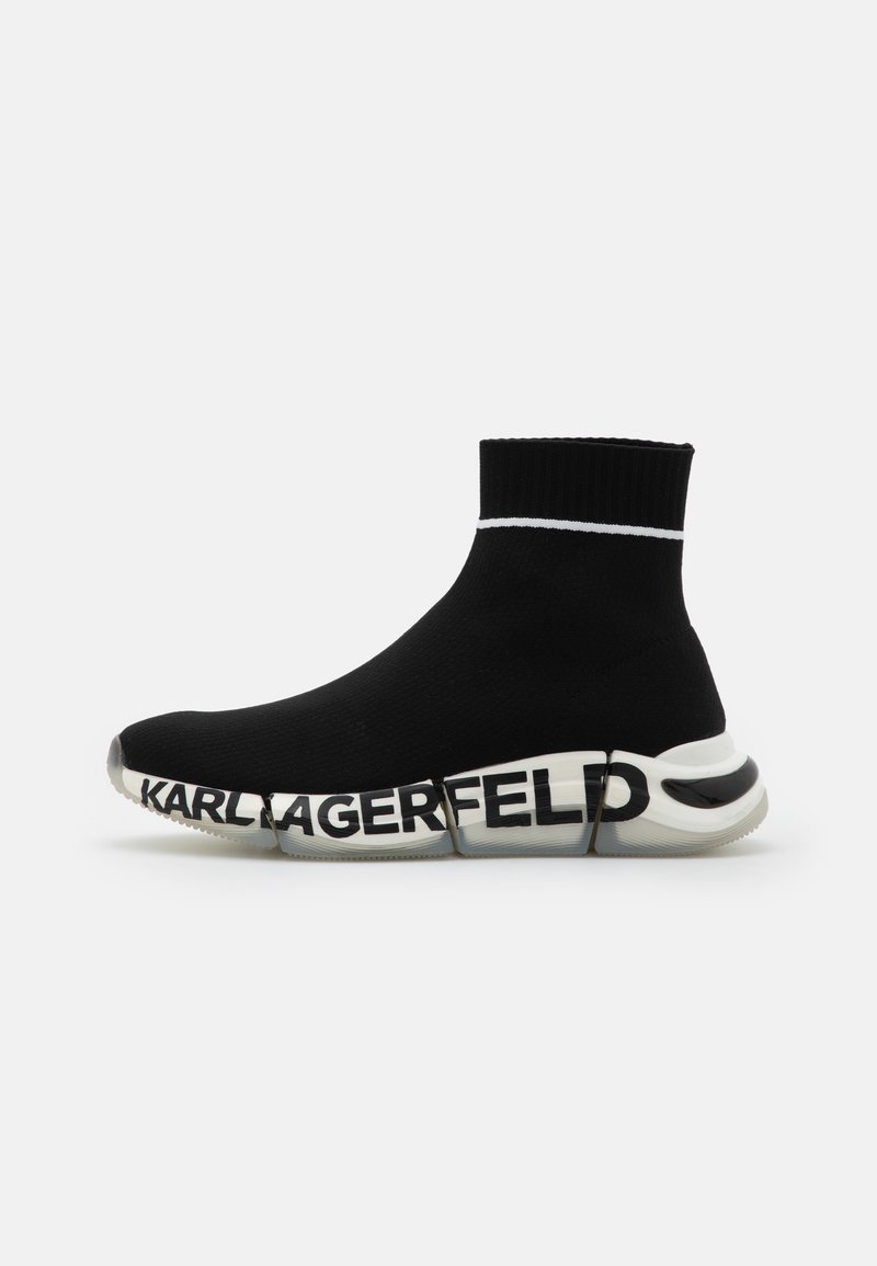 Stay stylish and comfortable this Autumn/Winter season with these black high-top sneakers from Karl Lagerfeld. Perfect for a sportive or casual look, these shoes for women are a must-have addition to your wardrobe. With their sleek design and iconic branding, these sneakers are the perfect blend of fashion and functionality. Elevate your everyday style with these versatile kicks from Karl Lagerfeld.