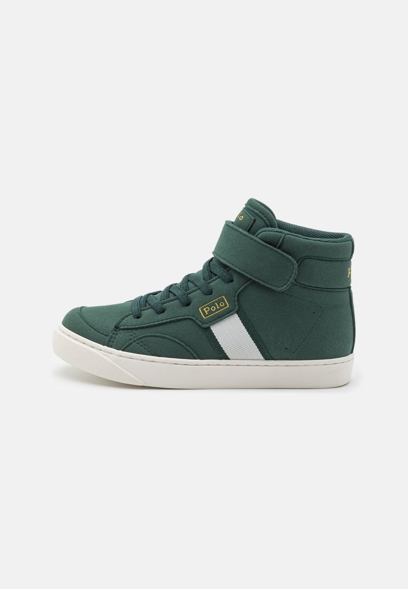 Stay fashionable and comfy this Autumn/Winter with these Polo Ralph Lauren sneakers. The sporty yet casual design in a trendy green color is perfect for everyday wear. With a high-top silhouette, these sneakers are both stylish and versatile for any outfit. Upgrade your shoe game with these must-have kicks.