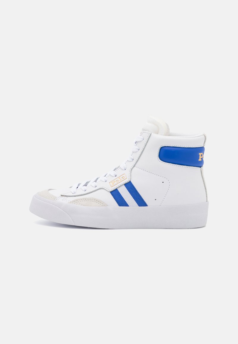 Elevate your casual looks with these high-top sneakers from Polo Ralph Lauren. Perfect for the Autumn/Winter season, the crisp white color adds a fresh touch to any outfit. With a sporty yet stylish design, these shoes are comfortable and versatile for all-day wear. Step out in style and stay on-trend with these chic Polo Ralph Lauren sneakers.