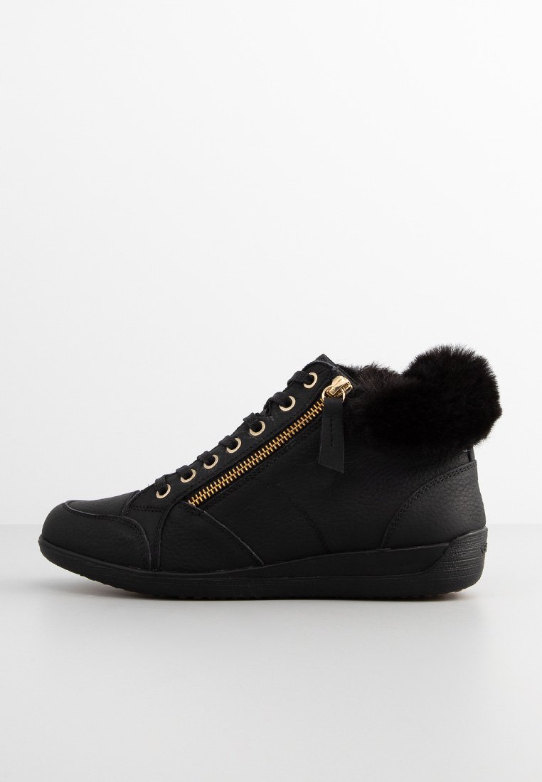 Stay stylish and comfortable this Autumn/Winter season with Geox's Sportive/Casual Women's Shoes in Black. These high-top sneakers combine sporty style with everyday wearability. Perfect for your active lifestyle, these shoes feature Geox's renowned breathable technology to keep your feet dry and comfortable all day long. Elevate your casual look with these versatile and chic sneakers.