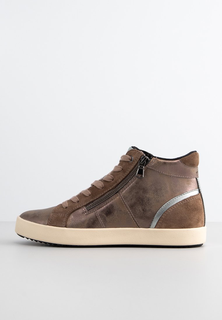 Stay stylish and comfortable this season with Geox women's high top sneakers in a rich brown hue. These sporty yet casual shoes are perfect for autumn and winter, with a breathable design to keep your feet cool and dry. Elevate your everyday look with these versatile and trendy shoes from Geox.