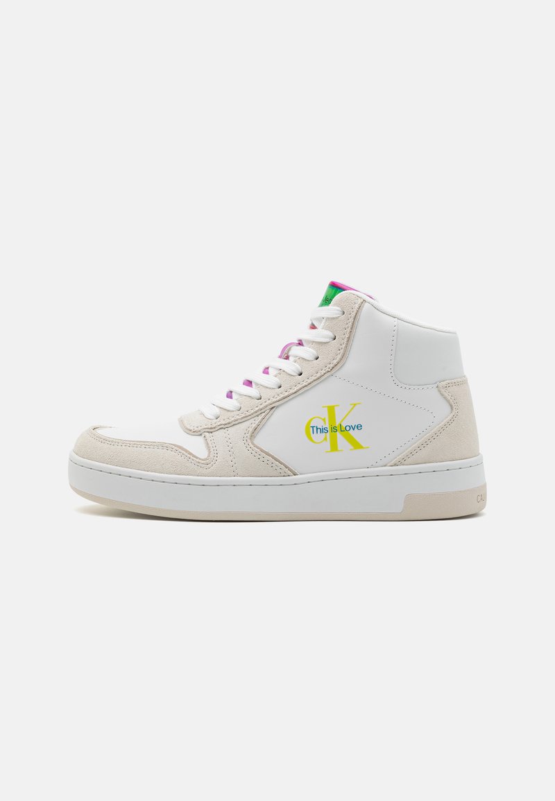 Stay trendy and comfortable with these sporty-casual Calvin Klein Jeans high-top sneakers for women. Perfect for the Autumn/Winter season, these shoes feature a stylish multi-colored design that adds a pop of color to any outfit. Whether you're running errands or meeting friends for coffee, these sneakers are the perfect choice for any casual occasion. Step out in style with Calvin Klein Jeans sneakers.