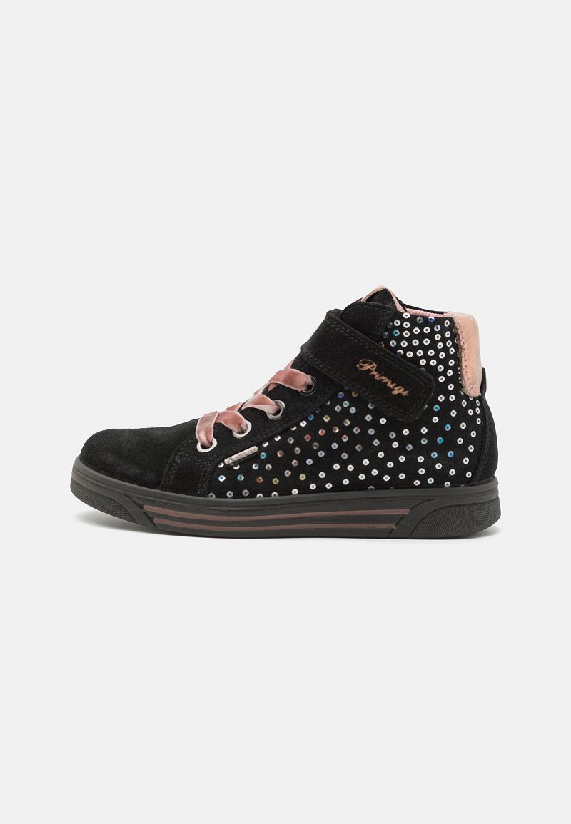 Stay comfortable and stylish this autumn/winter season with these black high-top sneakers from Primigi. Perfect for a sporty-casual look, these shoes for women are versatile and easy to pair with any outfit. Whether you're running errands or heading out for a casual day with friends, these sneakers are the perfect choice. Add a touch of street style to your wardrobe with these sleek and trendy footwear options.