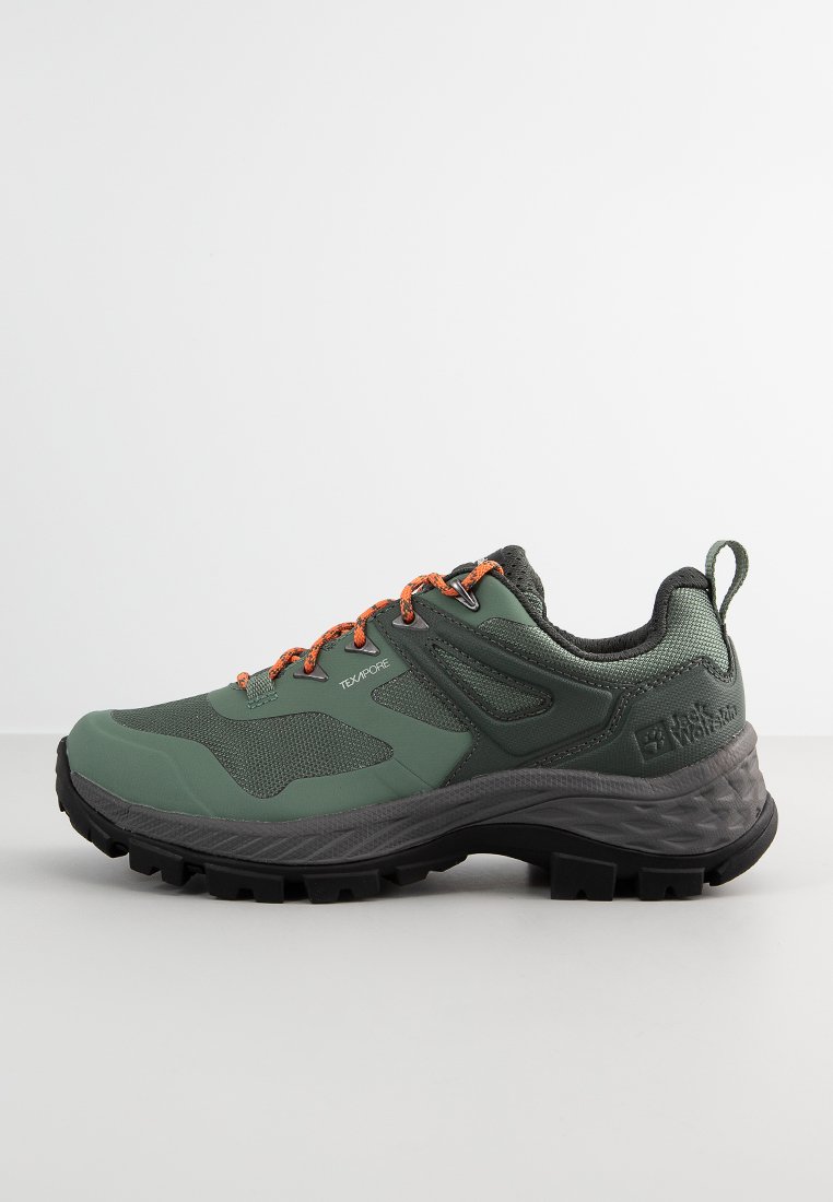 Introducing the Jack Wolfskin Women's Green Casual/Elegant Hiking Shoe. Perfect for the Spring/Summer season, this stylish shoe combines comfort and sophistication. Whether you're hitting the trails or strolling through the city, this versatile green shoe is a must-have. Upgrade your wardrobe with this chic footwear option.