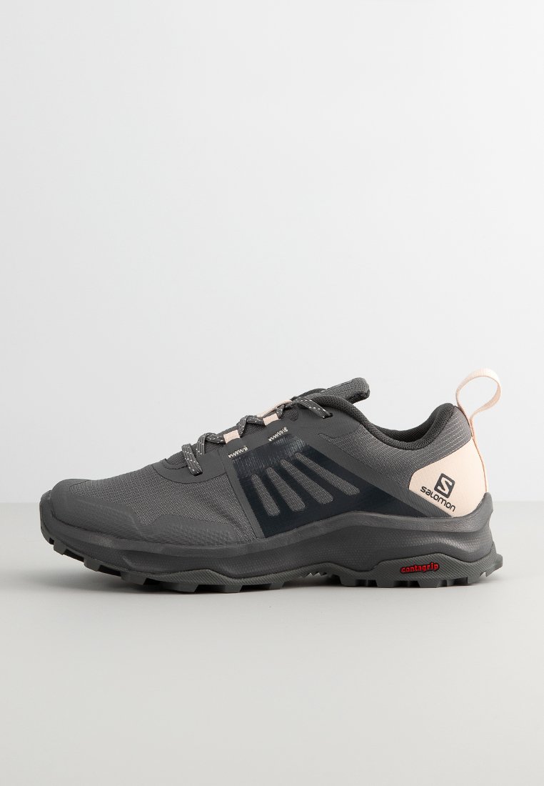 Introducing the Salomon Casual/Elegant Women's Grey Hiking Shoe, perfect for the Spring/Summer season. This sleek and stylish shoe combines comfort and fashion effortlessly. Whether you are hitting the trails or running errands, this versatile shoe is a must-have for any wardrobe. Stay chic and comfortable all day long with Salomon.