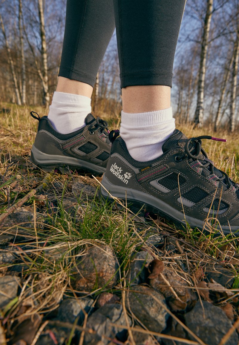 Stay stylish and comfortable this Spring/Summer with the Jack Wolfskin Women's Casual/Elegant Grey Hiking Shoes. Perfect for everyday wear, these shoes combine a sleek design with durable materials. Whether you're exploring the city or hitting the trails, these versatile shoes are sure to elevate any outfit. Upgrade your footwear collection with these chic Grey Hiking Shoes from Jack Wolfskin.