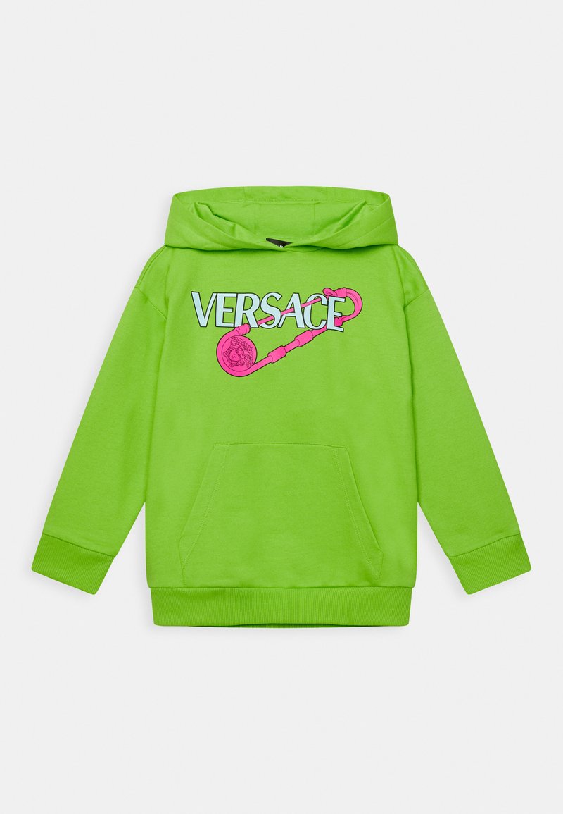 Stay cozy and stylish in this Versace Casual Women's Hoodie perfect for the Autumn/Winter season. In a beautiful shade of Green, this hoodie is the ideal addition to your wardrobe. The relaxed fit and soft material make it a must-have for chilly days. Elevate your casual look with this versatile and fashionable felpa con cappuccio.