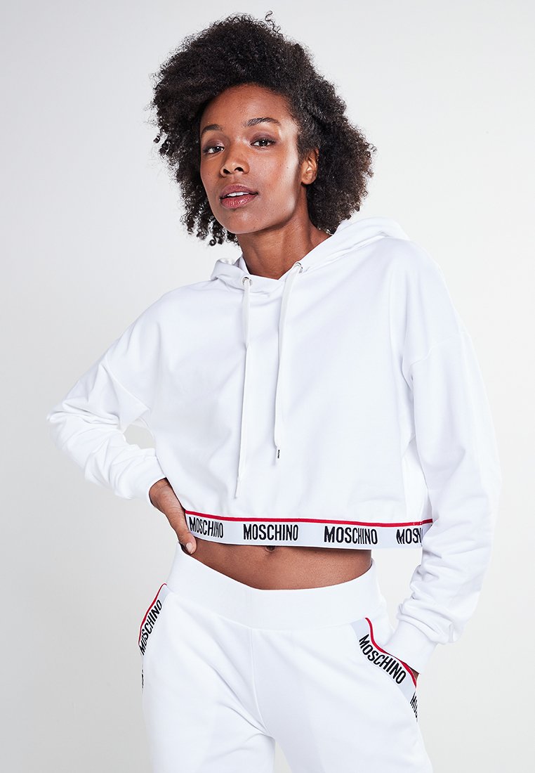 Stay cozy and chic in this Casual Women's Hoodie from Moschino Underwear. Perfect for the Autumn/Winter season, this white hoodie is a versatile wardrobe staple. With a relaxed fit and stylish design, this felpa con cappuccio is ideal for layering or wearing on its own. Elevate your street style with this must-have piece.