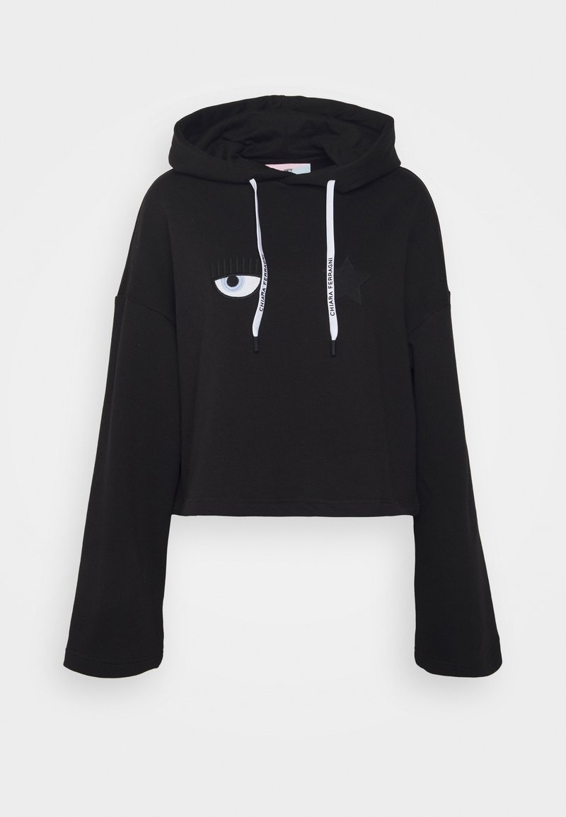 Stay cozy and stylish this Autumn/Winter season with the CHIARA FERRAGNI Casual Hoodie for Women in Black. This versatile hoodie is perfect for layering and features a comfortable fit. Elevate your everyday look with this effortlessly chic wardrobe essential. Perfect for staying warm in chilly weather while still looking fashionable.