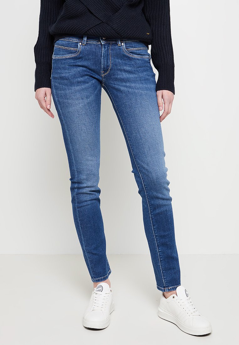 Stay cozy and stylish this Autumn/Winter season with the Casual Blue Skinny Fit Jeans from Pepe Jeans. These trendy pants for women are perfect for everyday wear, featuring a sleek silhouette and timeless blue color. Upgrade your wardrobe with these must-have jeans that effortlessly blend comfort and fashion. Ideal for pairing with sweaters and boots for a chic seasonal look.
