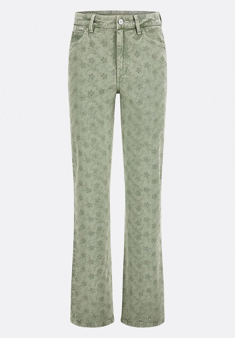 Stay effortlessly chic in these Guess Slim Fit Jeans for Women in a lovely shade of Green. Perfect for the Autumn/Winter season, these Casual pants are versatile and stylish. Pair them with a cozy sweater and boots for a trendy look that will keep you warm and fashionable. Update your wardrobe with these must-have pants from Guess.