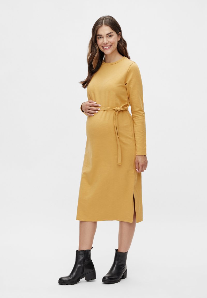 This Casual/Elegant dress from Mamalicious is perfect for the Spring/Summer season. In a sunny Yellow hue, it exudes freshness and sophistication. The soft jersey fabric ensures comfort all day long. A versatile piece that effortlessly transitions from day to night.