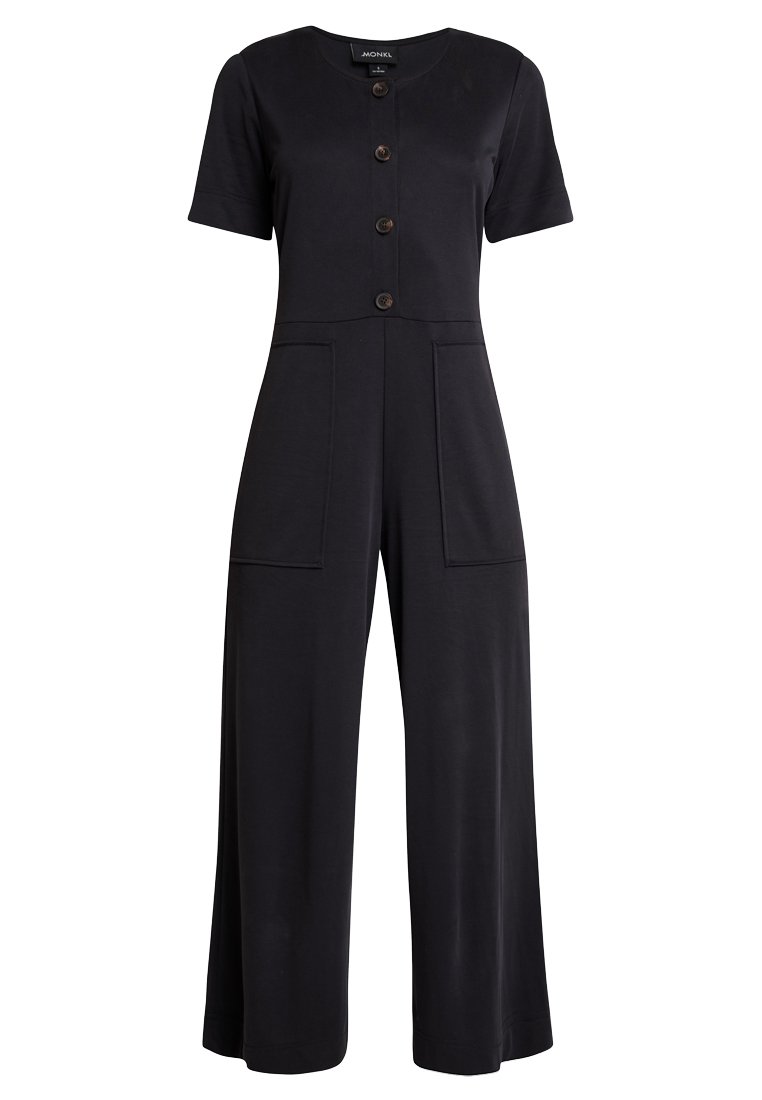 Elevate your spring/summer wardrobe with this Casual/Elegant jumpsuit from Monki in sleek black. Perfect for any occasion, this versatile piece effortlessly combines comfort and style. The relaxed fit and wide legs create a flattering silhouette, while the plunging neckline adds a touch of sophistication. A must-have for the modern woman who wants to look effortlessly chic all season long.