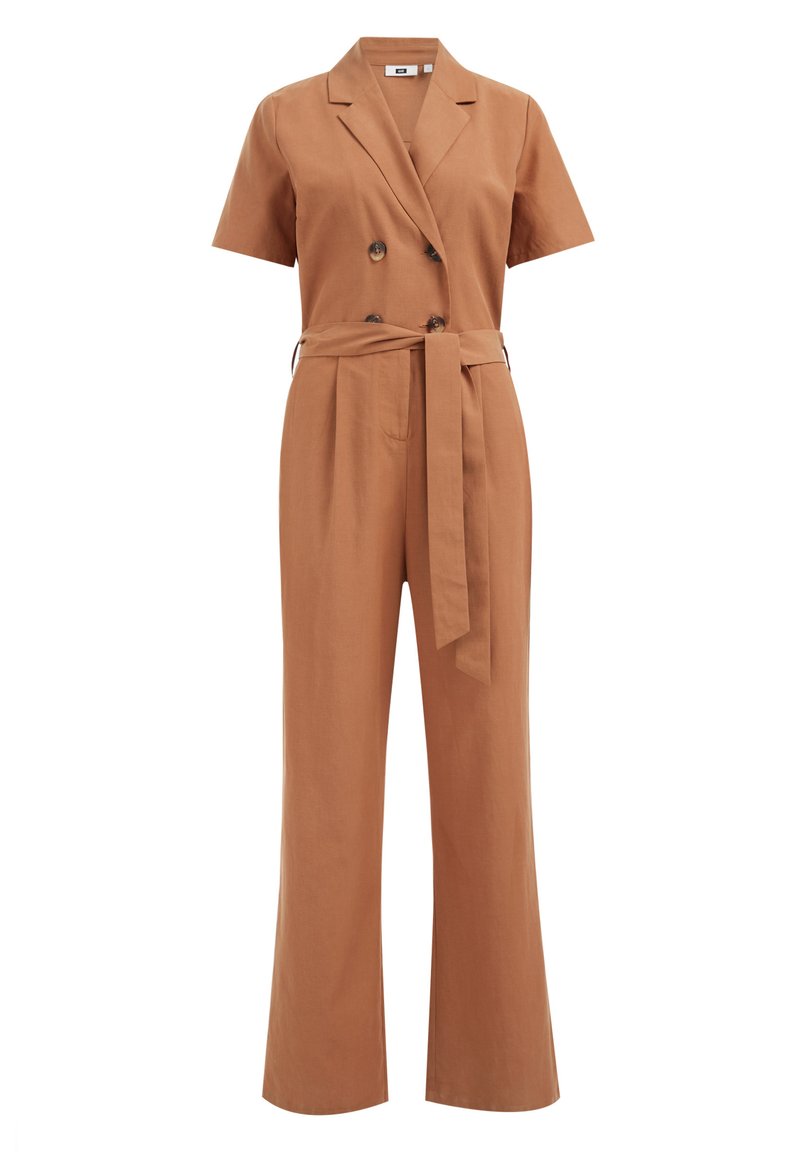 Stay effortlessly chic in this WE Fashion yellow jumpsuit, perfect for the spring and summer season. The casual yet elegant design makes it a versatile piece for any occasion. With a flattering fit and trendy color, this jumpsuit will elevate your style game. Embrace feminine sophistication with this must-have wardrobe staple.