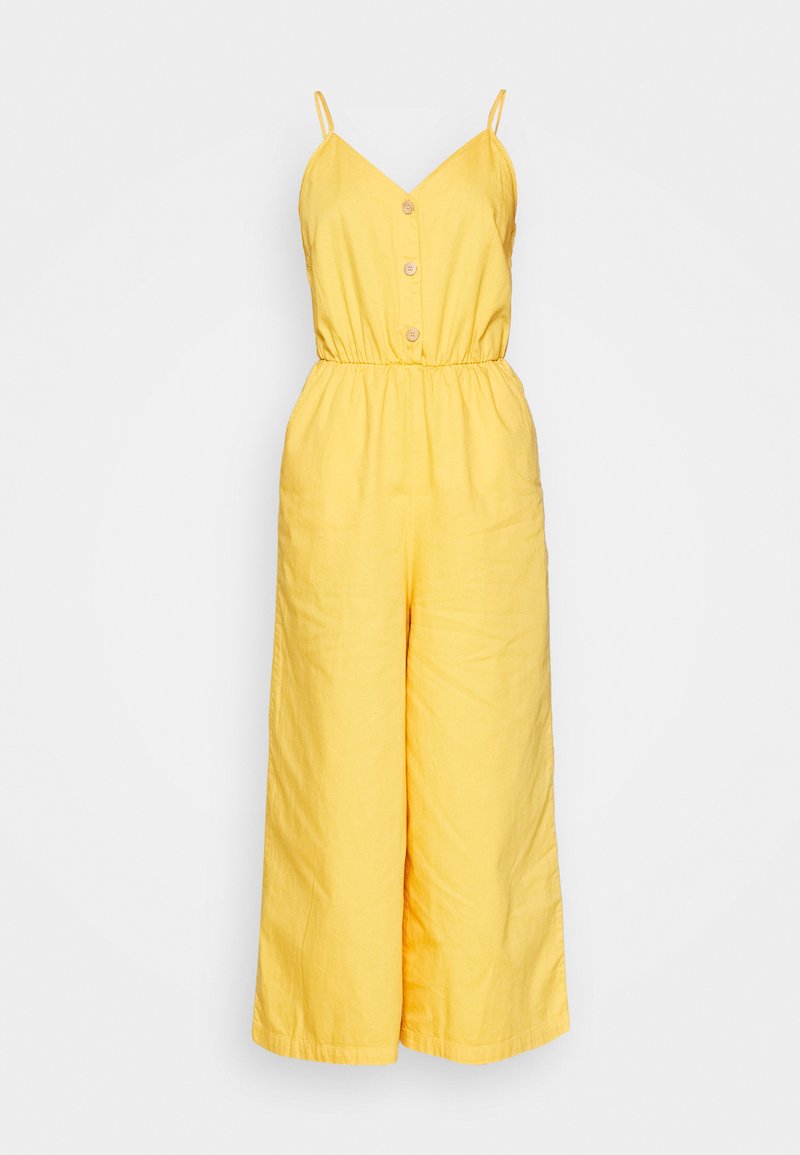 Stay effortlessly chic this Spring/Summer in the Monki Yellow Jumpsuit. This casual yet elegant piece is perfect for any occasion, whether it's a brunch with friends or a night out on the town. The bright yellow color adds a pop of sunshine to your wardrobe, while the comfortable fit ensures you stay stylish and comfortable all day long. Add this versatile jumpsuit to your collection for a versatile and fashionable look.