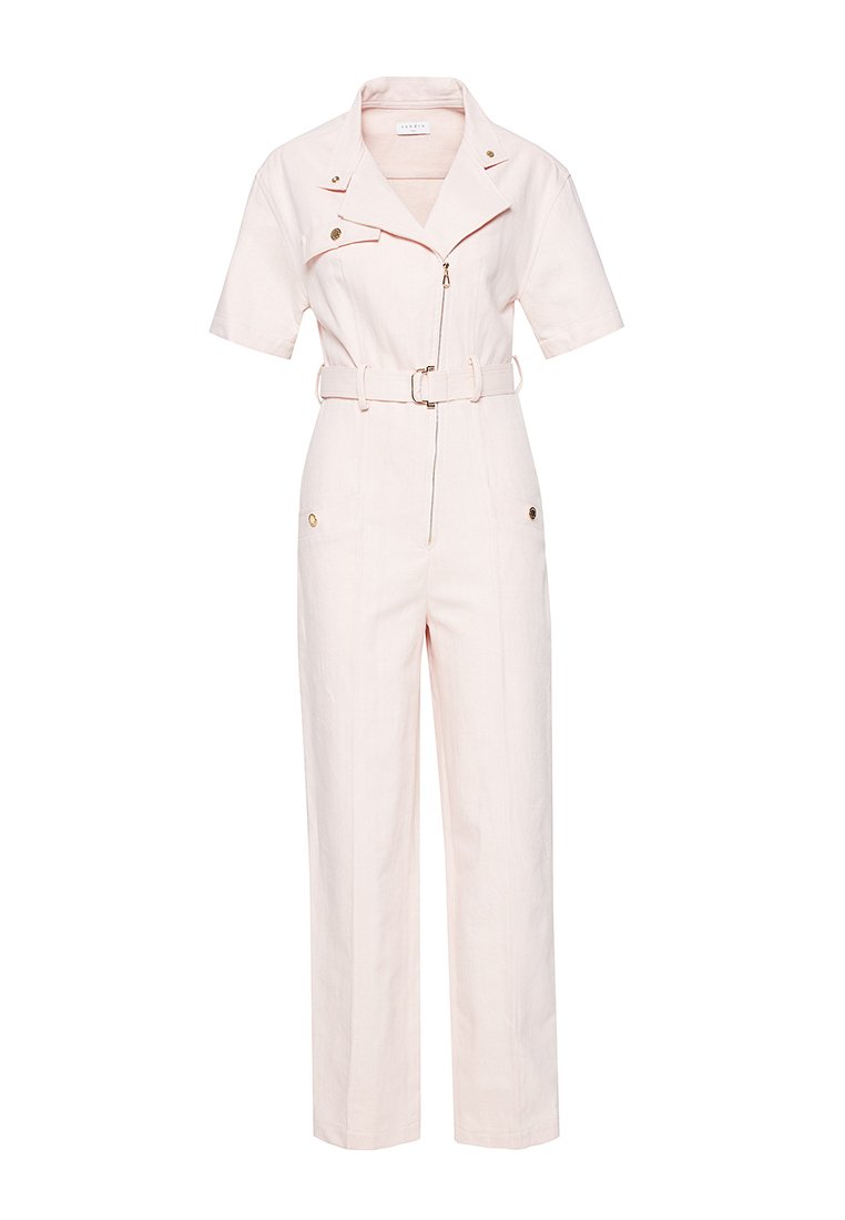 This pink jumpsuit from sandro is the perfect blend of casual and elegant style for women. Ideal for the Spring/Summer season, this versatile piece can be dressed up or down for any occasion. Stay chic and comfortable in this trendy jumpsuit, a must-have for your wardrobe this season. Stand out in style with this fashionable sandro jumpsuit.
