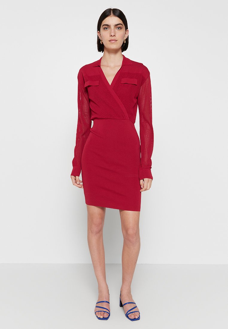 Stay effortlessly stylish this Spring/Summer with this red MARCIANO BY GUESS casual shirt for women. Perfect for adding a pop of color to your wardrobe, this knit shirt is a must-have for the season. With its versatile design, this shirt can easily be dressed up or down for any occasion. Add a touch of chic simplicity to your look with this timeless piece.