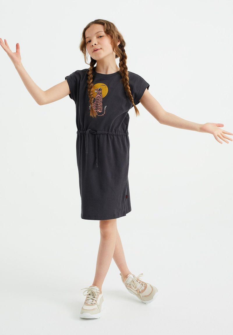 Stay effortlessly stylish this Spring/Summer with the Casual/Elegant Grey Dress from WE Fashion. This versatile piece combines comfort with sophistication, perfect for any occasion. The soft jersey fabric drapes beautifully, while the neutral grey color keeps it chic and timeless. Elevate your wardrobe with this must-have piece for the season.